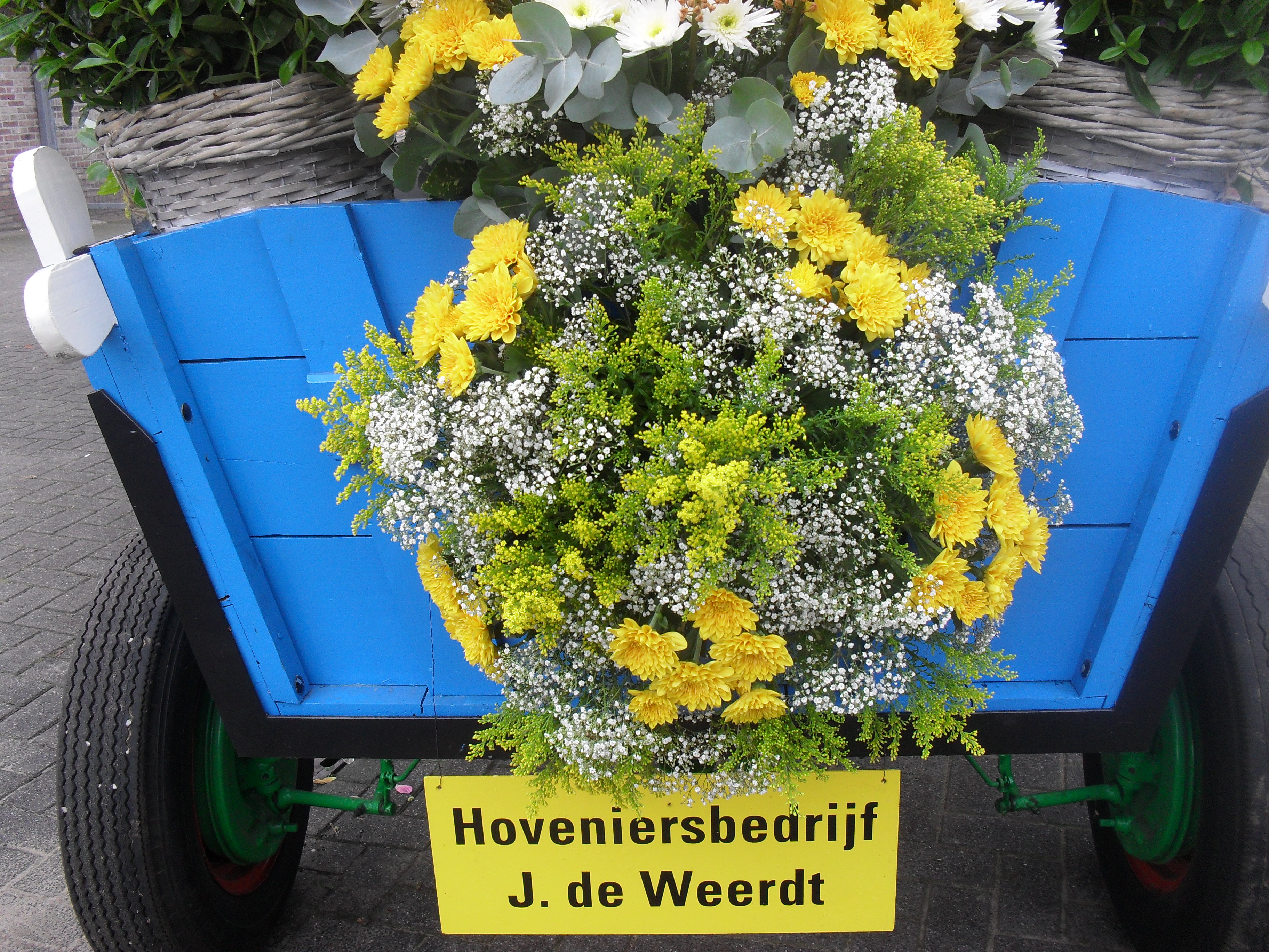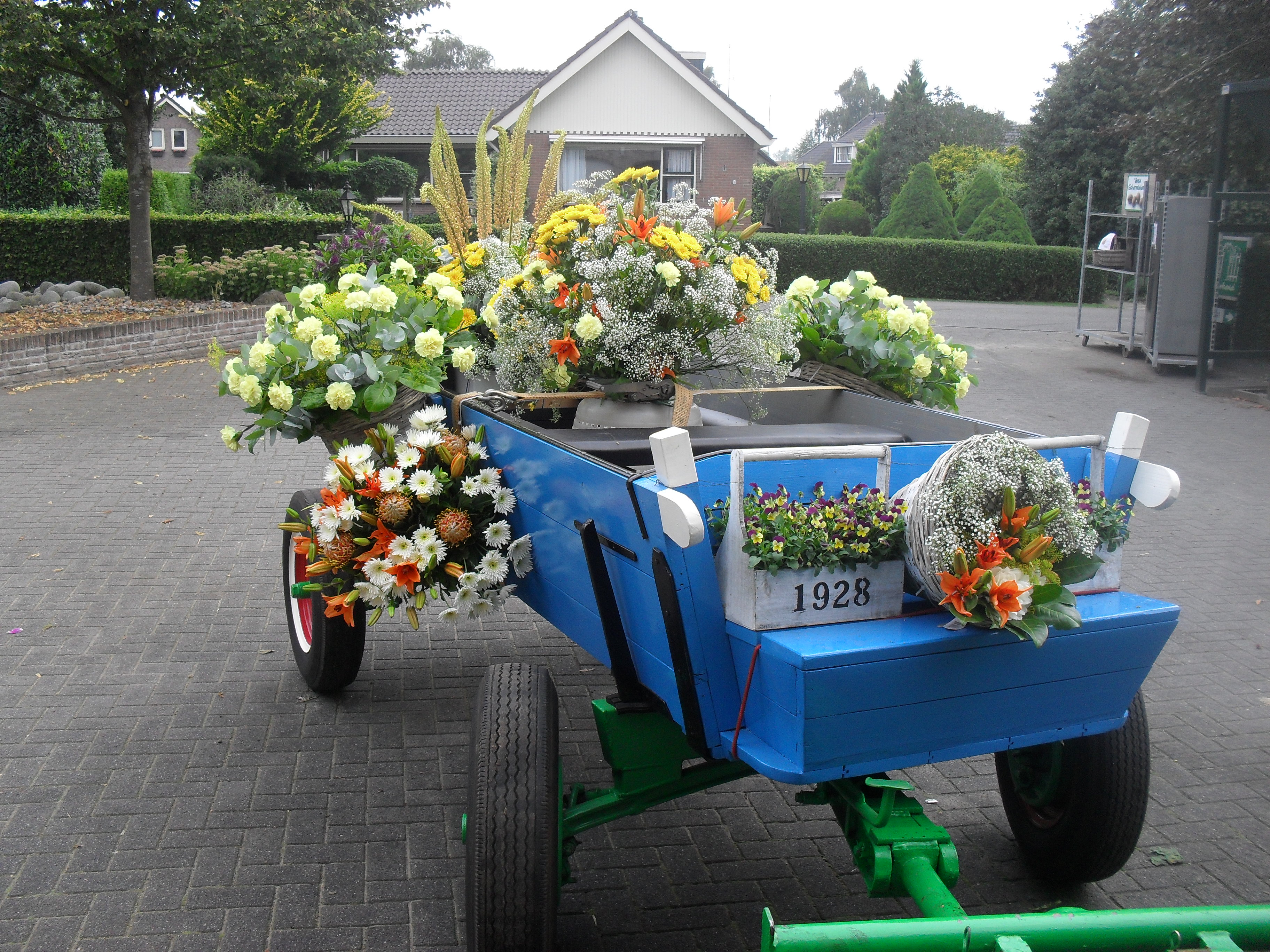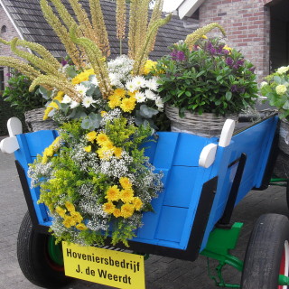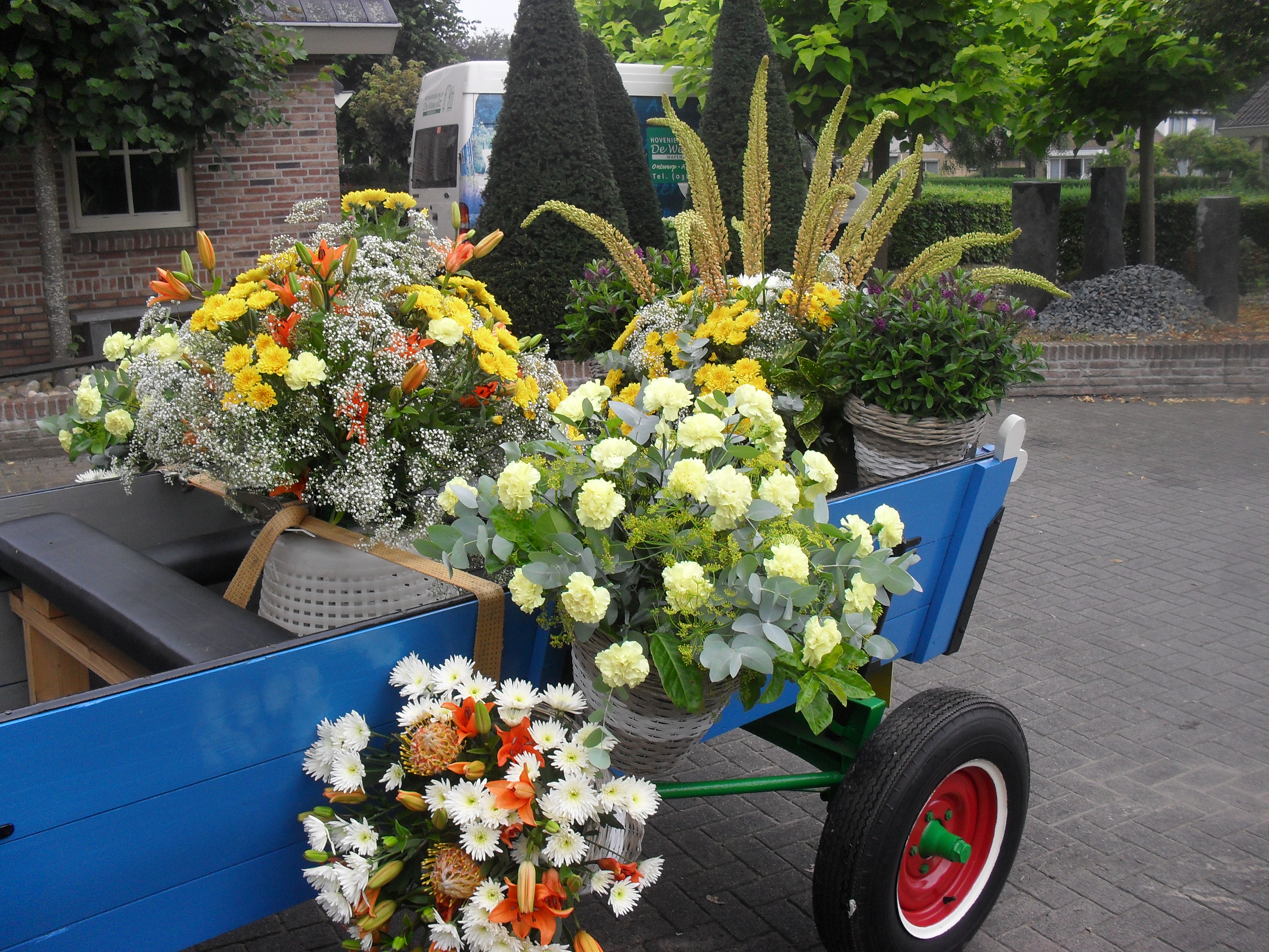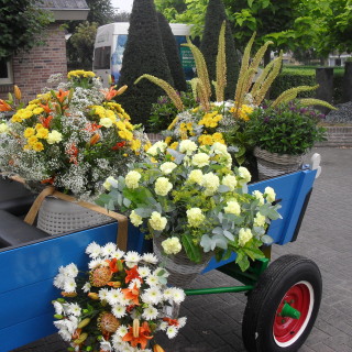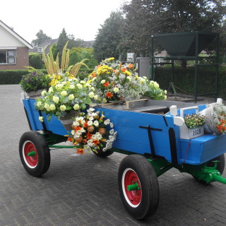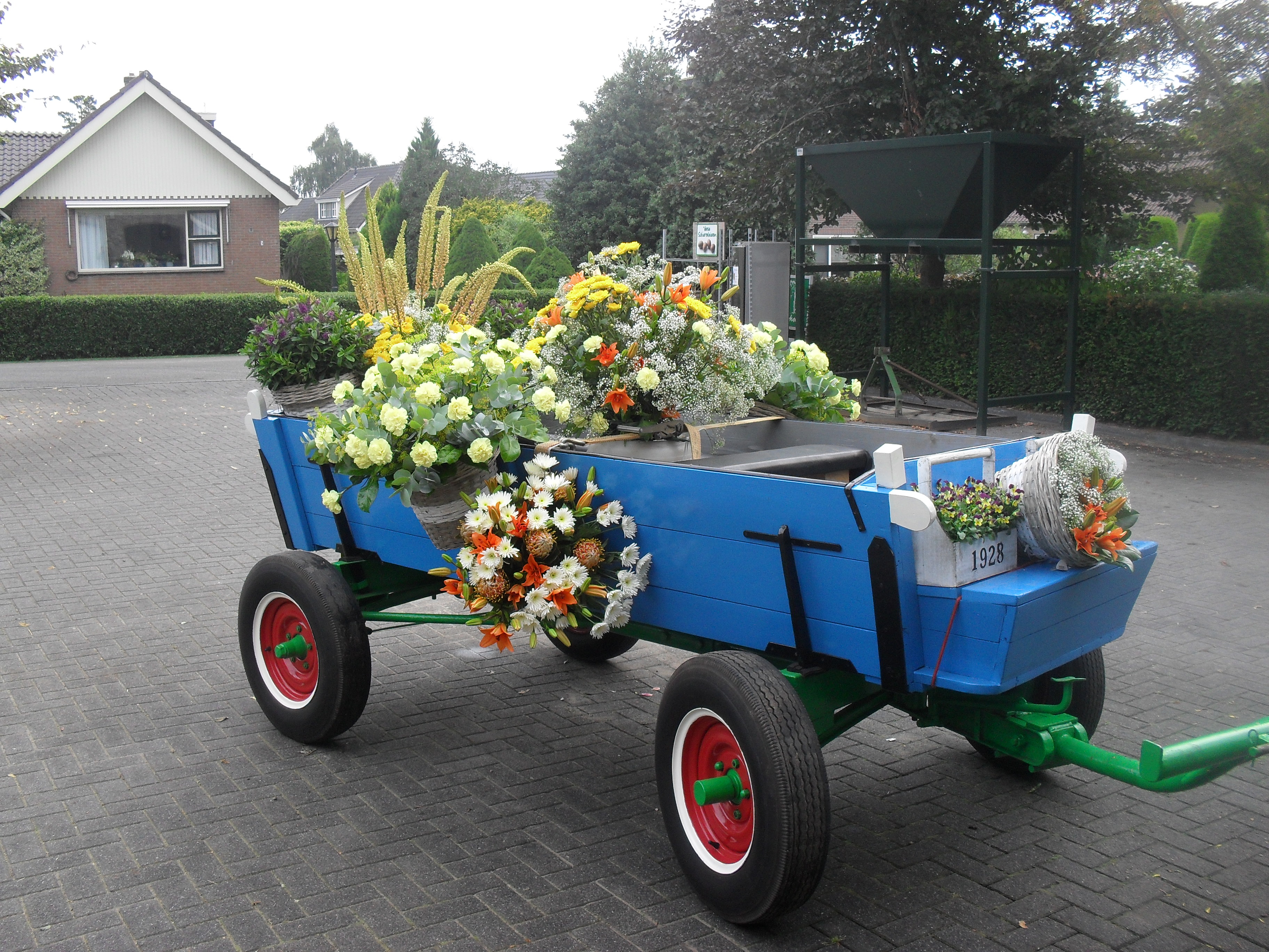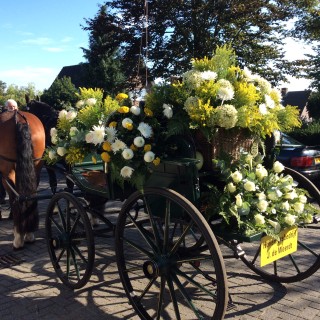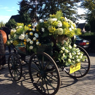 Projectinformatie Ieder jaar sponsoren wij met veel plezier een wagen van menvereniging ‘het Wapenvelds Gerij ‘. Deze wagen wordt ook door ons opgemaakt. En af en toe en trouwerij. Uitgevoerde werkzaamheden:Bloemencorsobloemstukken