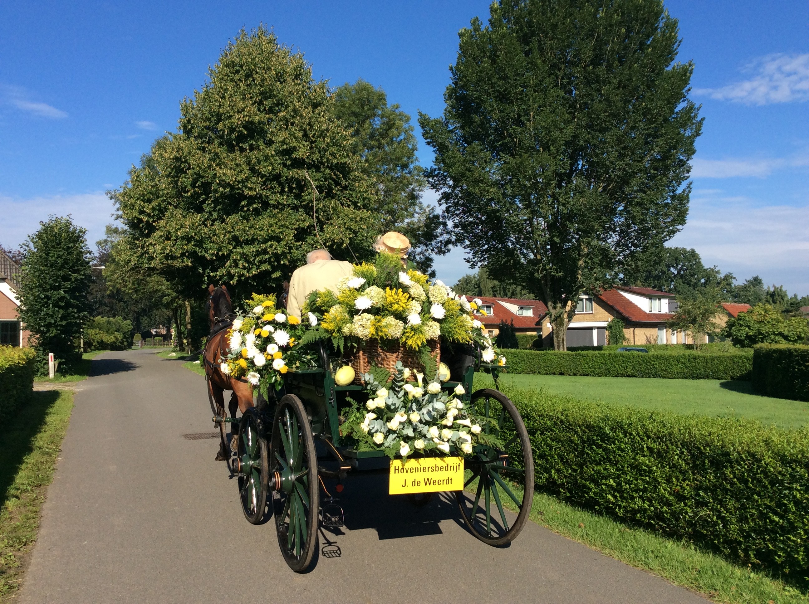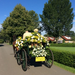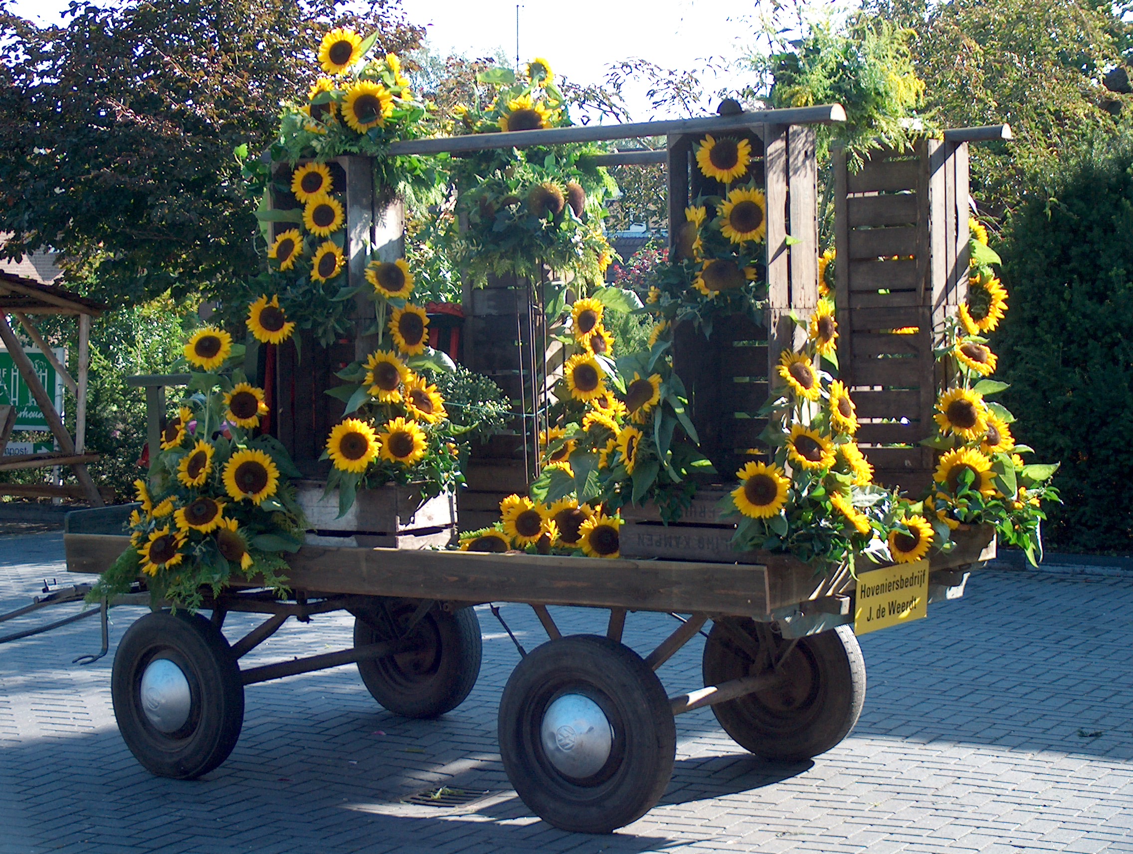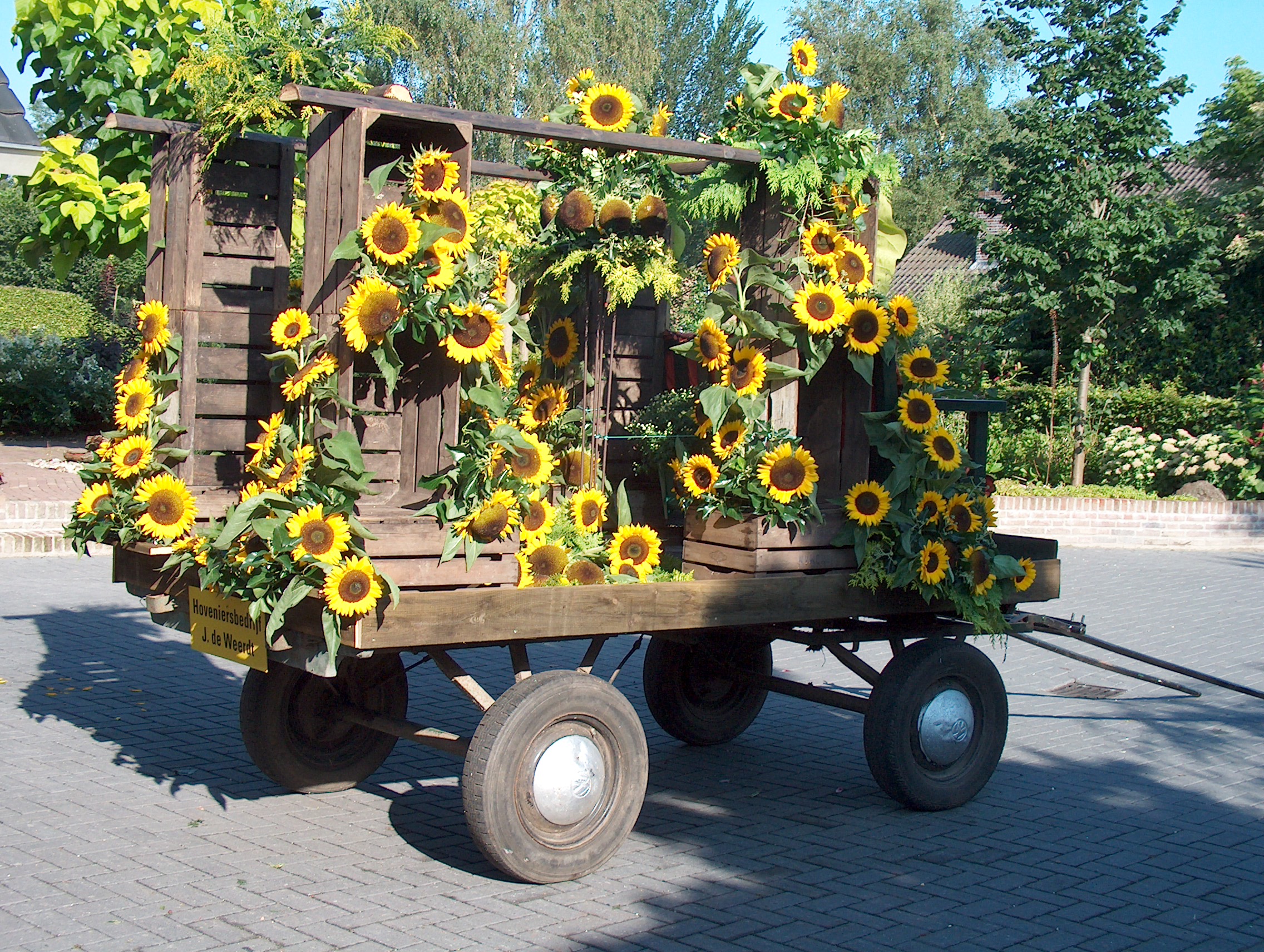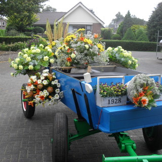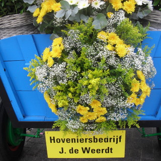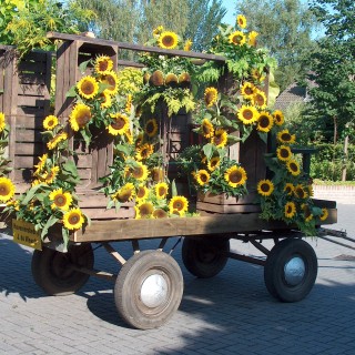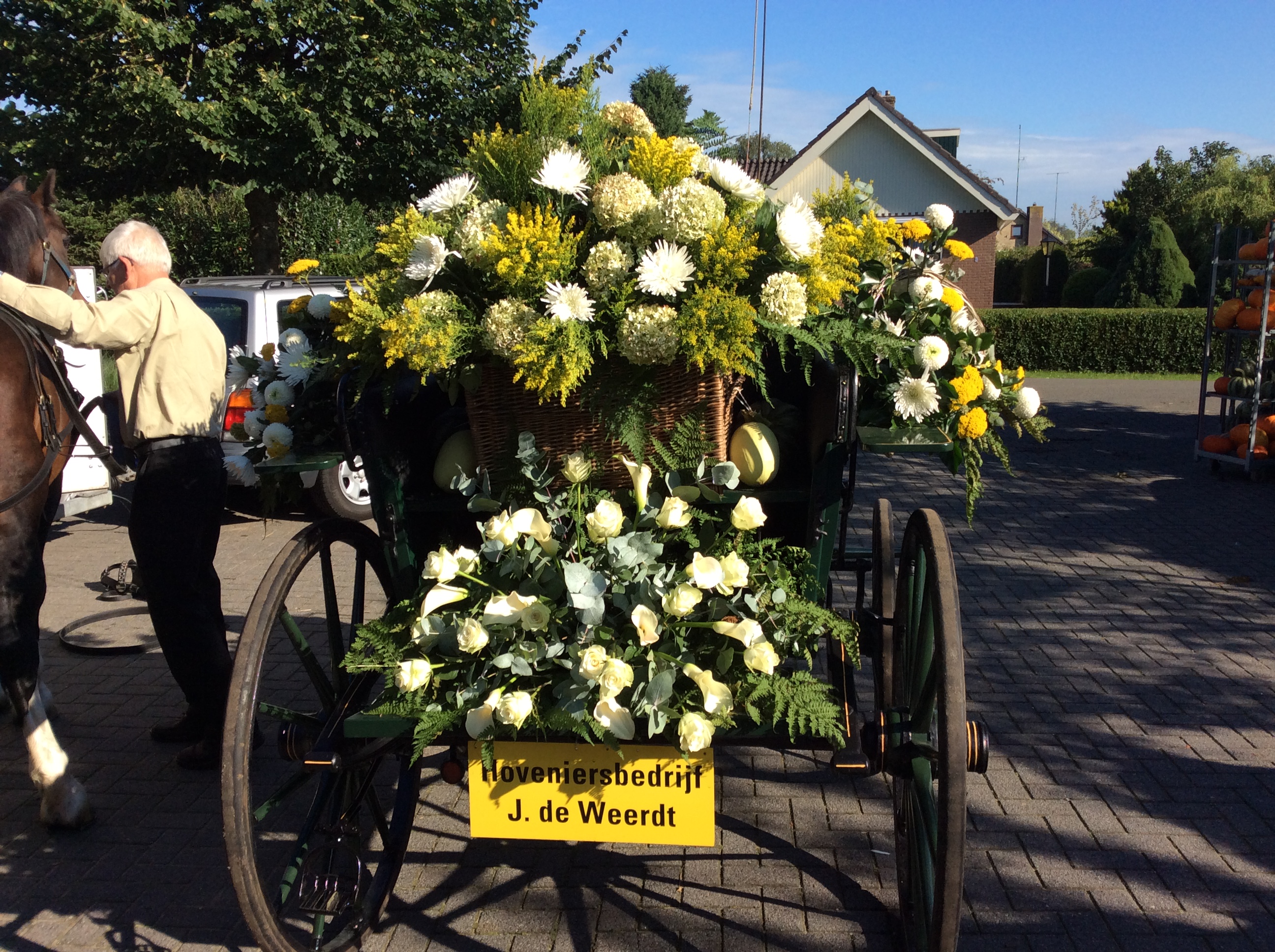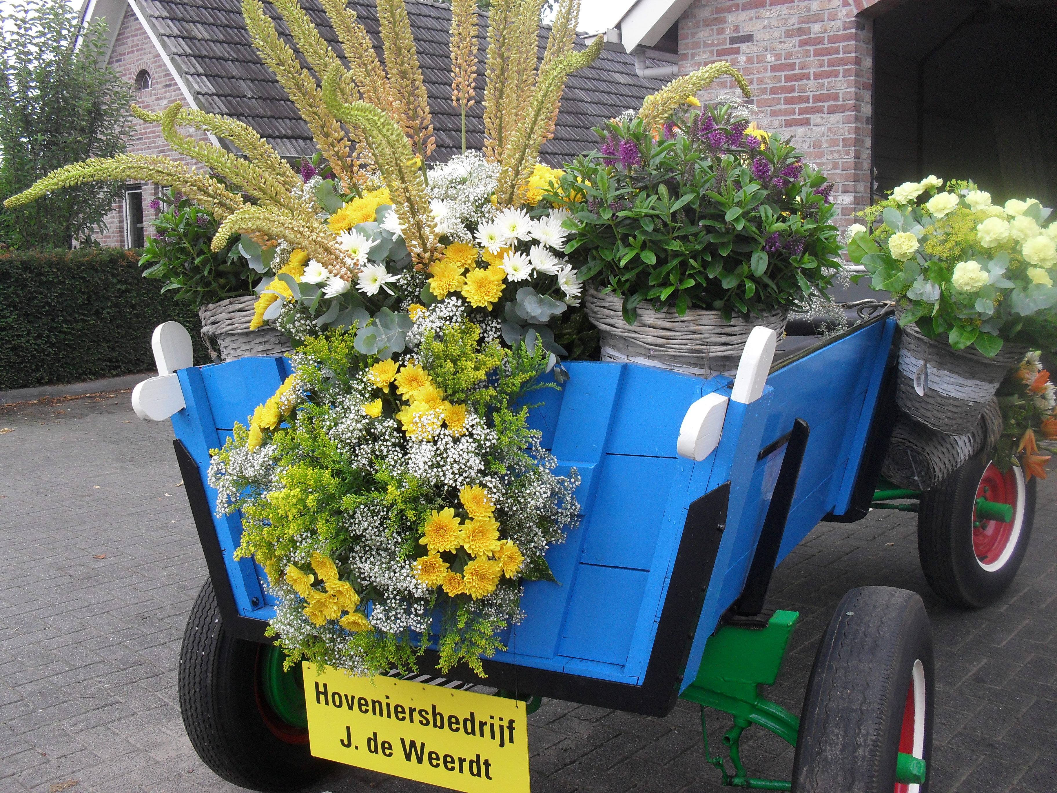 Projectinformatie Ieder jaar sponsoren wij met veel plezier een wagen van menvereniging ‘het Wapenvelds Gerij ‘. Deze wagen wordt ook door ons opgemaakt. En af en toe en trouwerij. Uitgevoerde werkzaamheden:Bloemencorsobloemstukken